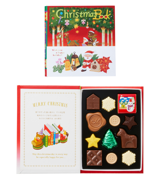 わくわくいっぱい!絵本のようなパッケージ のクリスマスブック!クリスマスのきらめく世界を表現した、プレーンチョコレートの詰合せ。