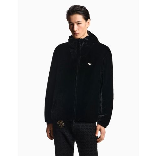 リバーシブルのデザインが特徴的なフード付ジャケット。片面は身体を暖かく包み込むシェニールを使用し、胸にアイコニックなゴールドのイーグルを小さく飾ったデザインです。反対面はナイロンでカジュアルな雰囲気に仕上げ、背面にオーバーサイズのコレクションパッチをあしらいました。今年の干支でもあり、エネルギー、情熱、自由の希求を象徴する馬が主役になったアイテムです。