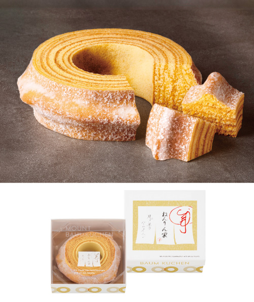 あふれ出す、濃厚なバター風味で食べ応えのあるバームクーヘン。外は香ばしく、中はしっとり。味も食感も”しっかり”とした、フランスパンのような食べ心地が魅力の逸品です。濃厚なバター風味の生地を長時間かけて焼きあげることで、カリッ、しっとりと独特な食感を生み出しました。