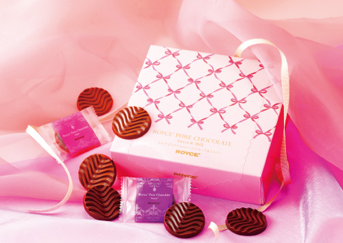 人気のピュアチョコレート[スイート&ミルク]を、ピンクのリボンをデザインした、この時期だけの特別なパッケージに詰めました。