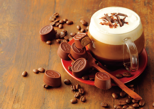 すっきりとした甘さのチョコレートでコーヒーとココアをブレンドしたコク深い味わいのクリームを閉じ込めました。ザクっとしたクッキークランチがアクセントです。