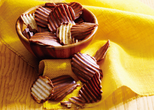 甘さと塩味が絶妙なハーモニー。ポテトチップの片面にまろやかなチョコレートをコーティングしました。