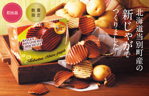 ロイズの工場がある北海道当別町産の新じゃがのみを使用したポテトチップの片面に、口どけの良いまろやかなチョコレートをコーティングしました。毎年人気の味をぜひ。