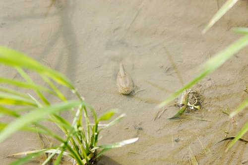 収穫後に、「すきこむ」作業を行い、雑草の種を残さないように土を混ぜ、藁を敷き、微生物を増やします。その後、春に「しろかき」を、縦・横・縦と丁寧に 3回行い、田んぼの土にしっかりと水が溜まるように行います(一般的なしろかきよりかなりてまひまをかけています)。この手間と愛情がたっぷり注がれた土壌があるからこそ農薬・化学肥料を使わなくても稲は元気に育ち、お米が本来もつおいしさや風味がいっぱいに詰まったお米が育まれるのです。生命力にあふれる兵四郎米は台風や暑さに負けたことがないそうです。「食べていただく方に安全・安心で本当においしいお米をお届けしたいと思ったらこれはあたり前のことなんですよ。」米づくり素人の私たちから見ても大変な手間がかかっていることは明らかでしたが、真っ黒に日焼けした明るい笑顔で発した野見山さんが発した この言葉が大変印象に残りました。