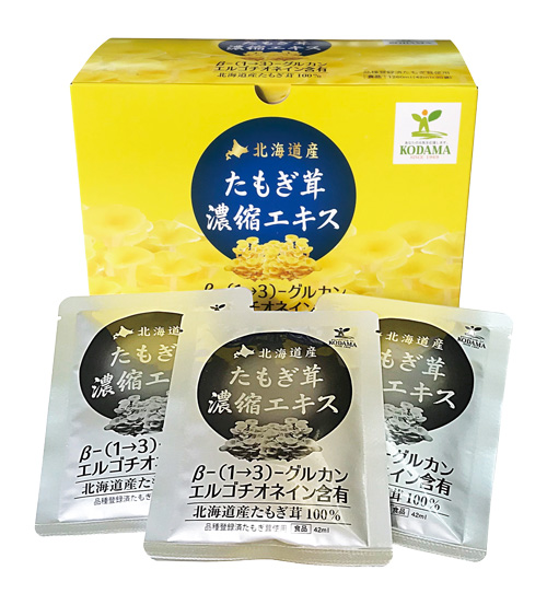 北海道の「幻のキノコ」とよばれるたもき茸。脳が必要とする栄養分エルゴチオネインと、腸内細菌のバランスに影響を与える食物繊維βーグルカンが含まれます。たもぎ茸にはエルゴチオネインが他のキノコ類と比べて特に豊富に含まれています。「たもぎ茸濃縮エキス」は手軽にエルゴチオネインを摂取できます。