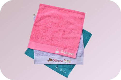 「貴方の思いを込めた世界で1枚のタオルをギフトに」カラータオルにお好きなモチーフ、文字、数字などをほどこした世界で1枚のタオルを3月、4月異動、入学、卒園、部活の仲間、転勤などの節目に心の残るパーソナルGIFTとして贈りませんか?カラータオルは40色、刺しゅうモチーフは3,000種類以上からお選び頂けます。