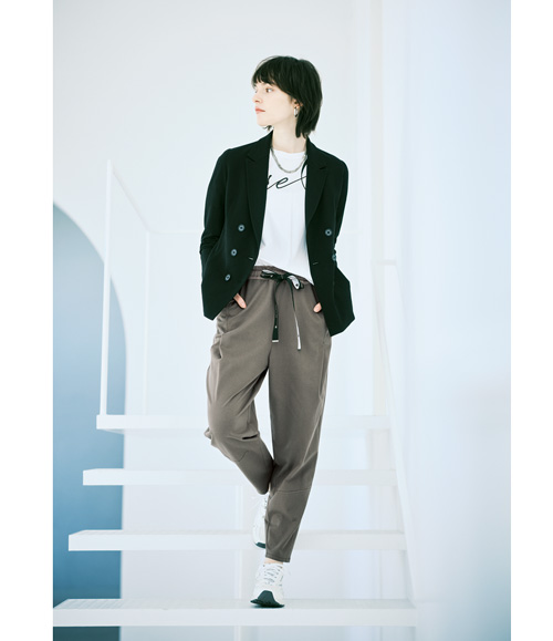 膨らみのあるソフトタッチと絶妙な肉感が特徴の天竺ジャージを使用。セットアップでも着用できるジャージフルアイテム企画。腰回りのダーツ下にタックを入れて立体的なシルエットに仕上げ、切り替えと裾のダーツでテーパードシルエットに仕上げた着用するだけで雰囲気を醸し出せる上品なイージーパンツです。