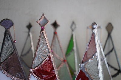 ステンドグラスのインテリア雑貨や硝子、天然石+真鍮のアクセサリーの制作、販売。クリスマスに飾れるステンドグラスのオーナメントを準備しています。