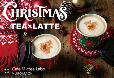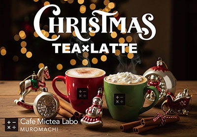室町の長崎街道(シュガーロード)沿いのビル1階にある『Cafe Mictea Labo』。産地、品質、栽培にこだわった素材で身体にやさしいクリスマスティーラテをご提供いたします。