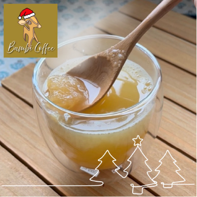 いつものオリジナルブレンド『バンビ珈琲』と、りんごコンポート入りのホットドリンク『ホットアップル』をご提供します。ホットアップルはジンジャー効果でぽかぽかになりますよ。