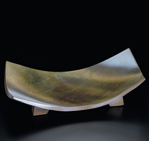 緑釉線文花入 径46.5×奥行23.0×高さ12.5cm