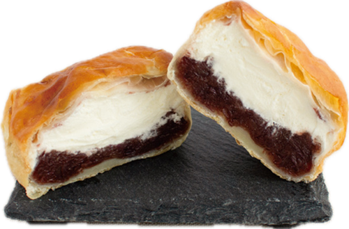 創業より厳選した赤小豆で仕上げる自慢のつぶ餡を、良質なバターを使用したサクサクのパイ生地で包んだ銘菓「ぎおん太鼓」。そこに贅沢な生クリームをたっぷりと合わせた、特別仕立てのおいしさです。やさしい甘さの餡と、とろけるクリームの絶妙なハーモニー。コーヒーや紅茶とも相性抜群。