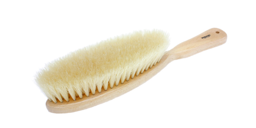 上質なやさしい馬毛を使用。カシミヤなどデリケートな素材にも安心してお使いいただける、コシのやさしいブラシです。