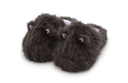 ふわふわのファー素材で猫の毛並みを表現した、ゴージャスなボリューム感のルームシューズ。アッパー部分に立体的な猫の耳が付いているのがポイント。