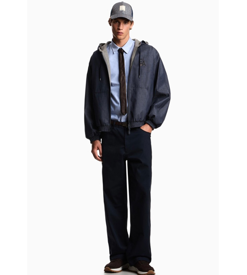 フードの付いた、リバーシブルのジップアップブルゾン。柔らかく通気性のよい素材と軽量の糸を使用し、実用性とモダンなセンス、そしてさりげなく洗練されたスポーティな雰囲気をブレンドしたデザインです。