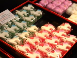 干支の午ゼリーや縁起物の鶴羊羹ゼリーなど、季節の風物でかたどった色鮮やかな半生菓子💖 お好きなものを選んで自分だけの詰め合わせセットを作るのも楽しいですよ🥰