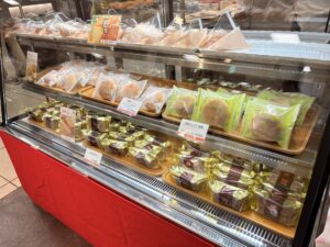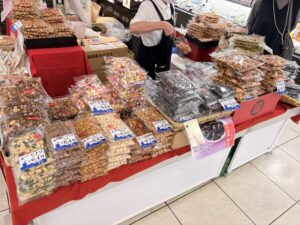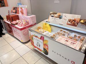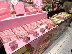 パッケージの鮮やかさが目を引く焼き菓子がずらりと並んでいました🎀ミニサイズのバームクーヘンや生キャラメルサンドを販売しています。