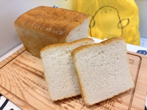 「米粉の食パン ひよね」(冷凍 10枚切1斤 1,296円、限定数各日 15斤)は、〈ひよ子本舗吉野堂〉のお菓子づくりの技術が結集したグルテンフリーの食パン。お米の甘みともちもち感、味わいの深さが特徴です💖