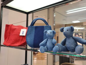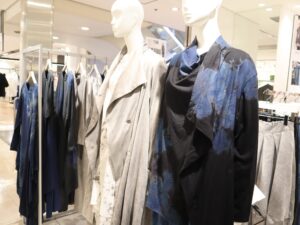 今回の限定ショップでは、独自の技法による「墨染」「藍墨染」「游墨染」「黒遊藍」に加え、デザイナー自身の手仕事から生まれる一点物のアートピース「遊」シリーズを展開しています😊