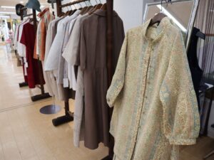 天然素材の絹・綿・麻に刺し子やピンタックを施したこれからの季節に活躍しそうな大人かわいいデザインのブラウスやワンピースなどが揃います👚 中でも大島紬に細かく刺し子を施した服にも注目👀💕 見た目も美しいうえ、耐久性にも優れた一点ものです😍