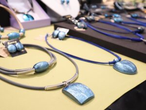 東京練馬に工房を構える〈ともゑ工房〉のカシュー塗りや漆塗りのアクセサリーは重厚感がありながら軽いつけ心地🍃 これからの季節は青や白などカラーが人気なんだとか💙