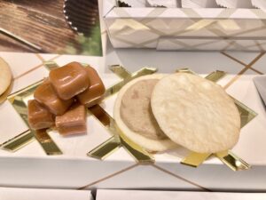 「KAMUべっ甲飴」(15個入900円)は香ばしい豆入りで、食感と風味の両方を楽しめます🥰