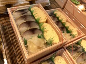 おすすめは「さば寿司だし巻き弁当」(1折1,512円)✨国産さばと名物のだし巻きを一度に味わえる満足感のあるお弁当です。