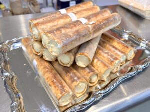一番人気は、2度焼きしたサクサクのパイにチョコと自家製カスタード、北海道産純生クリームをたっぷり詰めた「コルネパイ(写真)」(1本454円)💖香ばしさとやさしい甘みのバランスが絶妙で、何個でも食べられそう😋