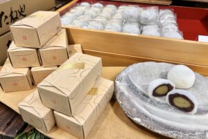 徳島県産の「なると金時」を使い、さつまいもの甘さと食感を活かした「福寿芋」🍠や、栗を贅沢に一粒丸ごと包んだ「栗大福(写真)」(2個入り756円)もおすすめです🌰