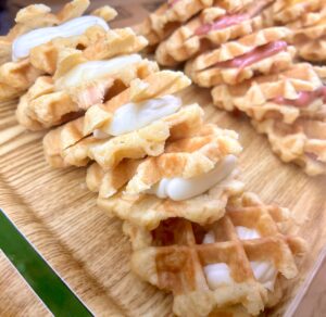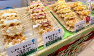 この日の「日替わりクリーム」(1個300円)は、人気上位の「マンゴー&レアチーズ」でした🥭🧀さらに、数量限定でワッフルの詰め合わせセットも登場しています😋ワッフルは冷凍で約1カ月半保存でき、常温で解凍後はクリーム入りが2日間、クリームなしは4日間日持ちするそう。