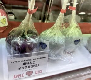 一番人気は、青くてインパクト大の「毒りんご(写真)」(1個600円)🍏見た目のわりに実は着色料が少なく、他のりんご飴と同じ味のはずなのに、なぜか一段とおいしく感じると評判なんだとか。一度味わってみてくださいね💕