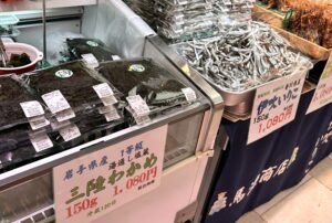 上品なだしが出ることで人気の看板商品「伊吹いりこ(写真右)」(150g 1,080円)🐟また歯ごたえのよい「三陸わかめ(写真左)」(150g 1,080円)🥗は、お吸い物・サラダはもちろん、刺身わかめやしゃぶしゃぶなどの鍋物にもおすすめです💖