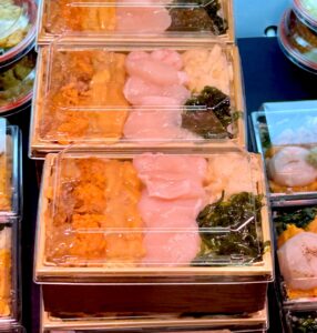 新鮮なうにをお弁当でも楽しめるよう独自製法で開発した「熟成うに」は、舌の上でとろける濃厚な味わい😋井筒屋創業90周年記念特別商品◎「うに3種 食べ比べ弁当(写真)」(毎日限定数30)は、他では味わえない唯一無二のおいしさです💛