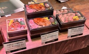 井筒屋創業90周年記念特別商品◎「白老牛極み三昧膳」(各日限定数50)は、白老牛をステーキ・すき焼き・寿司で贅沢に味わえる逸品🥩🍣オープン後に即完売していました!
