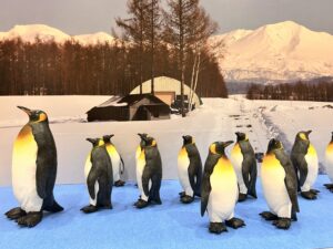 旭山動物園での冬の風物詩“ペンギンの散歩”をフィギュアで再現した展示。ペンギンたちがリアルで愛らしい🥰