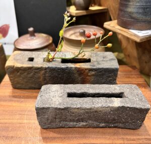 こちらは「井筒屋創業90周年記念作品」。釉薬を使っていないため、土そのものの良さが出るのだそう。色や質感、丸みを帯びた形にあたたかみを感じます♪