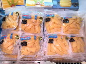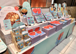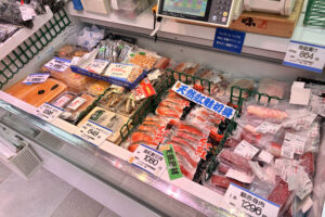 辛子明太子、天然塩紅鮭切り身、鯨赤身肉などの商品がずらりと並びます✨