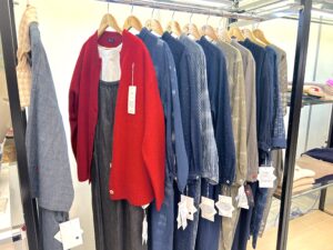 天然素材の絹、綿、麻に刺し子やピンタックを施した大人の洋服が揃います。