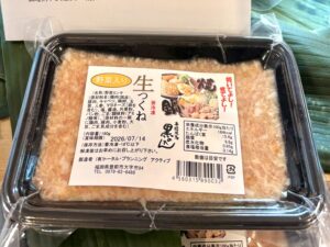 黒のれんの人気メニューは、3種のつくね💕その素となる「生つくね」を販売しています。鶏肉・豚肉ともに国産原料を使い、手間暇かけて炒めた玉ねぎを混ぜ込み、下味には焼き鳥のタレや塩を加えています。