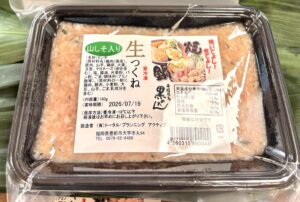 しその香りとふんわり山芋の「山しそつくねミンチ」(540円)。鍋料理だけでなく、焼いたり揚げたり炒めたりしてもおいしいのだそう🤤
