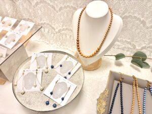 天然石・パール・貝などを使ったオリジナルジュエリーや絵画を創作している〈atelier WHITE & GOLD ray〉。