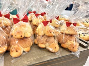 こちらは人気の「カメパン」(190円)✨カメの甲羅部分がメロンパンの生地でできています。親子の姿がとってもキュートで食べるのがもったいない!