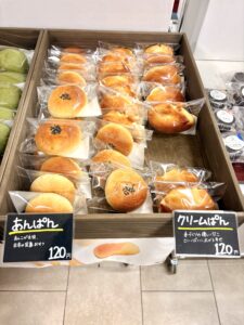 「あんぱん」(写真左、120円)と「クリームぱん」(写真右、120円)は、中の具材まで自家製にこだわっていて好評です🥰