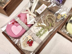こちらは「ワックスサシェ」(880円)。お好みの精油を垂らせば何度でも使えるので、長く香りを楽しむことができます😌かわいらしいので、お部屋に飾りたくなりますね🎀