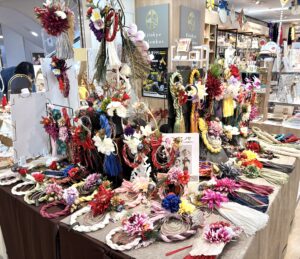 こちらでは、クリスマスリースにもしめ縄にもなる、鮮やかな飾りを販売しています。