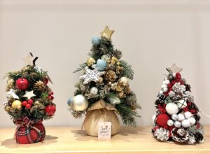 こちらは卓上にも飾れるミニサイズのクリスマスツリー(写真左、3,630円/写真中、8,800円/写真右、5,280円)⭐