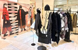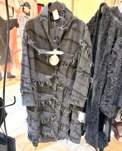 井筒屋創業90周年記念企画🎉✨〈モユル〉一押しのコート(写真、132,000円、素材:ウール100%)を、会期中先行販売。ななめフリンジが印象的で、羽織るとしっくりと身体になじみます。