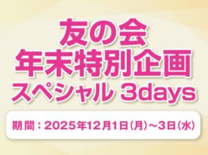 井筒屋では、友の会冬コースの満期に合わせて「友の会 年末特別企画 スペシャル3days」を開催! 期間中の特別ご奉仕品や割引など全館で取り揃えております!