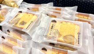 そして今、注目度No.1の新商品「甘露煮ケーキ」(324円)。大人気で出店初日は14:30には完売したのだとか😳✨しっとりふわふわの生地の中に、朝採れの和栗がごろっと入っていて贅沢感がすごい。どれも栗好きにはたまらないラインナップです💕