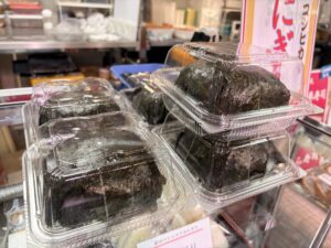 米どころ・新潟のコシヒカリでつくられる、おにぎりや巻き寿司を提供しています🍙✨井筒屋創業90周年記念特別商品◎「爆弾おにぎり」(1個981円、毎日限定数20)は、すじこ・たらこ・さけが入った贅沢なおにぎりです🤤